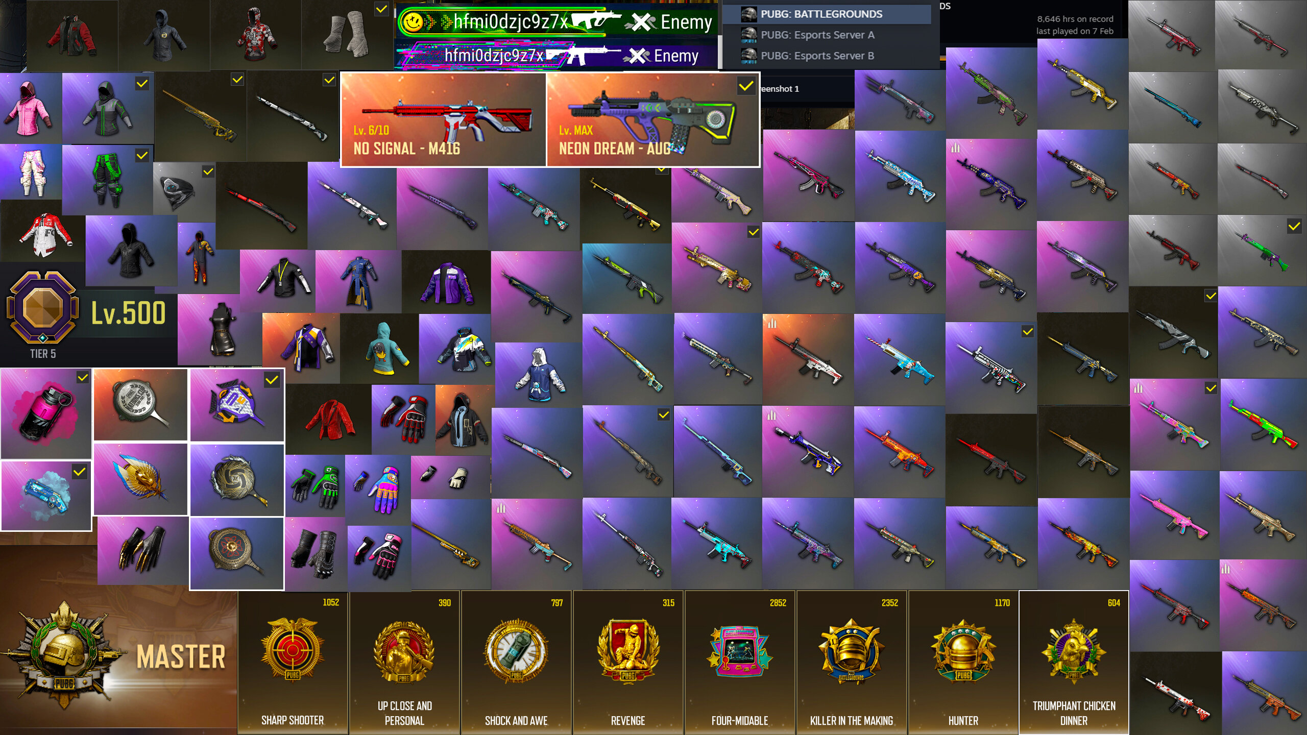 PUBG STEAM RARE ACCOUNT | [PROGRESSIVE] Phoenix - M416 Lv5 | [PROGRESSIVE] Neon Dream - AUG Lv1 | Purple Smoke Grenade | [BATTLESTAT] Extinction - Beryl M762 | NH-ESPORTS - Beryl M762 | MOZZ's M24 | BATTLESTAT Exchange Kit | 790+Very Worthwhile Skins