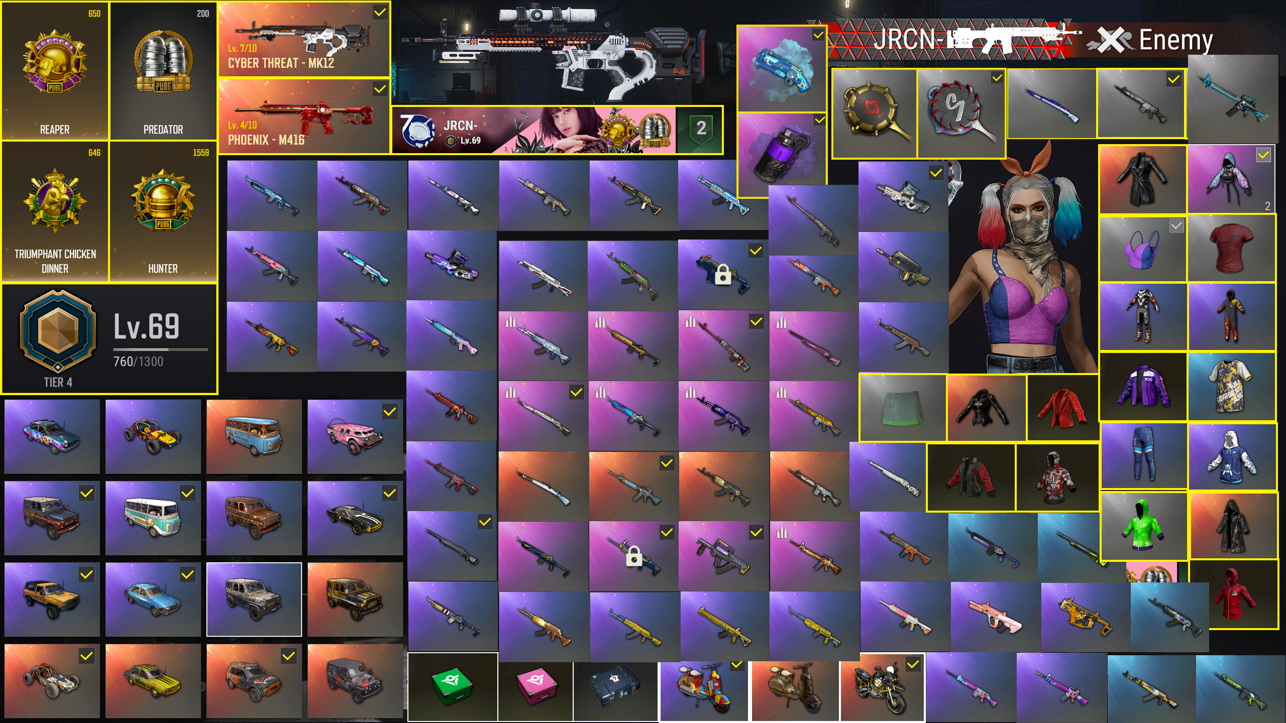PUBG STEAM PLAYTIME 11,182 HRS ACCOUNT FROM SEASON-1 & REAPER MEDAL MAX , SURVIVAL TIER-4 | [PROGRESSIVE] CYBER THREAT - MK12 LV.7 | [PROGRESSIVE] PHOENIX - M416 LV.4 | PURPLE SMOKE GRENADE | BLUE MAGICAL MIST - M79 | PGC 2019 WEAPON SET | PGI.S COLORSHIFT - PAN | PNC 2022 - M416 | PCS2 GILDED TRIUMPH - BERYL M762 | EXTINCTION - BERYL M762 | MANTICORE MOTOCROSS FULL SET | PNC 2022 HOTSTREAK FULL SET | PCS4 GOLD SPECKLE JERSEY | MARAUDER'S DRESS FULL SET | VENUS CLUB OUTFIT | GODV'S FULL SET | LISA'S BLACKPINK FULL SET | PGI.S TACTICAL FULL SET | JULIE'S FULL SET | MOON LIZARD'S GLOVES | DUNCAN'S INFILTRATOR HANDWRAPS | 5PORTY JACKET | 5LICK BLAZER | PGI RINGSIDE HOODIE & WEAPON SET | PGI 2018 "FOUR ANGRY MEN" HOODIE | SKIPNHO'S HOODIE | MINORU'S FULL SET| ESPORTS CAMPER SHIRT | ESPORTS CHICKEN DINNER SHIRT | JENNAJULIEN'S CROPPED CORSET | ZERATOR'S PLEATED SKIRT | CNH'S SLR | PGC 2019 GEN.G CHAMPIONSHIP - SLR | PCS2 FIERCE CONFLICT - SLR | WREXAGON - SLR | SWAGGER'S SLR | GREEN SHOT CALLER - SLR | HAREQUIN - SLR | PCS3 TAGGED OUT - AKM | ASHEK'S AKM | SHROUD'S M16A4 | PCS1 - M16A4 | PHOENIX SPIRIT - M16A4 & M416 | PGC 2022 ACED - GROZA | CONFETTI CAKE - M416 | SERPENT'S GARDEN - M416 | PGI.S HYDROODIP - M416 | THOMAS'S M416 | FULL AUTUMN - M416 | WAKGOOD'S M416 | DUNCAN'S M416 | PGI.S COLORSHIFT - QBZ | BLACKPINK - BERYL M762 | 17SHOU'S BERYL M762 | PGI.S COLORSHIFT - BERYL M762 | KILLAGE - BERYL M762 | HAPPY PEW YEAR - BERYL M762 | TOXIC - BERYL M762 |1650+ Worthwhile Skins
